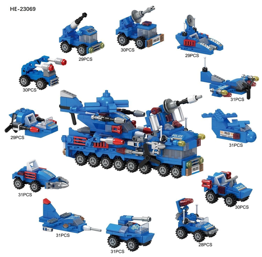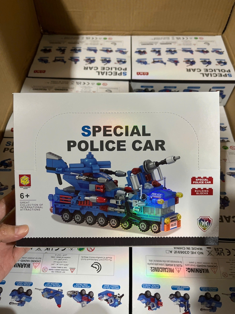 Bộ xếp hình xe cảnh sát đặc biệt 12 mẫu mã HE-23069 (Bán lốc 12 hộp)